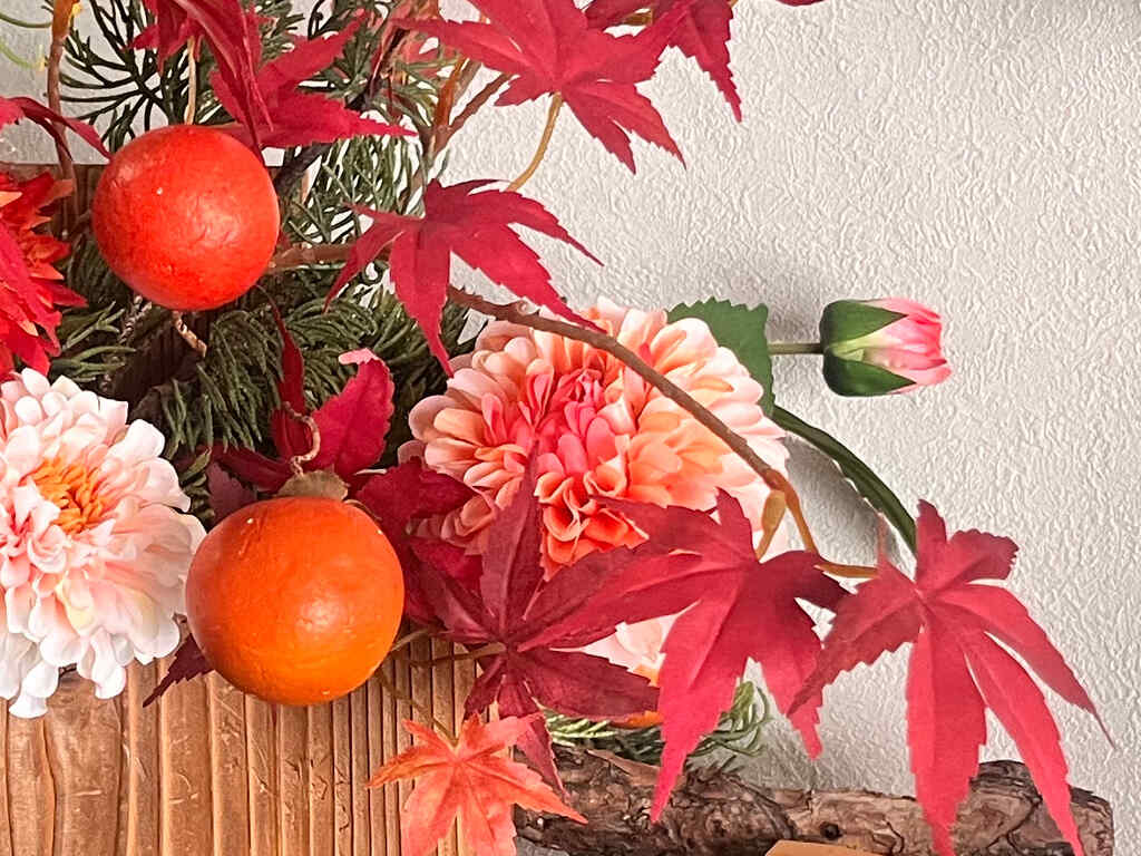 【紅葉リーフとアマリリスのアンティークアレンジメント】