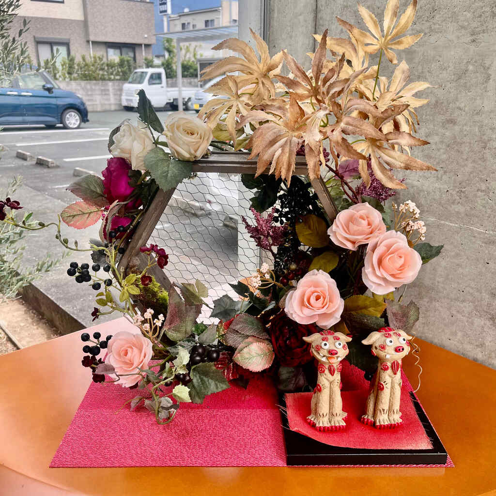 【紅葉リーフとアマリリスのアンティークアレンジメント】