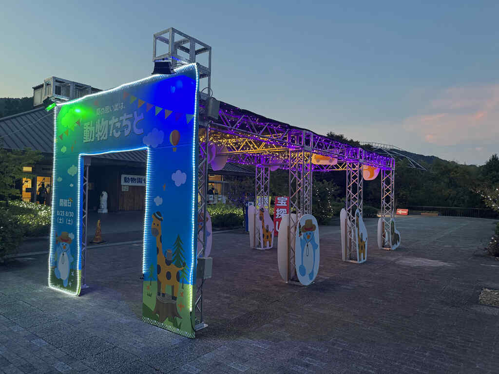 徳島大洋工芸 設営 とくしま動物園様 ご依頼 夜の動物園 第2シーズン 「中秋の夜歩きナイト・ズー」設営業務 設営場所/とくしま動物園内 トラス設営、照明、サイン類施工