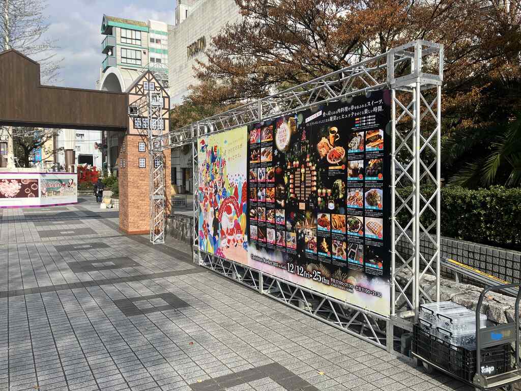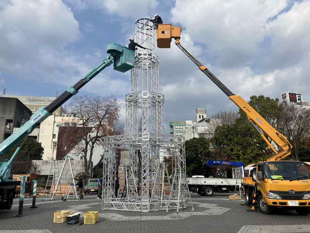 2025.12.17 高知大洋工芸 設営 Christmas Market in Kochi 会場:高知市 東洋電化中央公園 イルミネーション等の装飾物取付・トラス設置・看板製作等 中央タワーの施工 高所作業車を使用して組立を行っております アルミトラスを使用し看板の取付や入口のゲートを施工しております 日常では味合うことのできない 特別な空間を楽しんでは いかがですか ↑ ↑ ↑ 詳しくはクリスマスマーケットin高知のHPをご確認ください